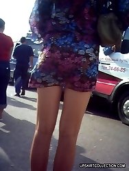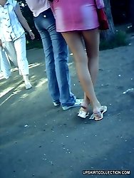 Lewd babes upskirt view looks great when they wear nylons